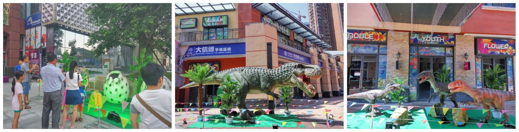6月18日,由自貢藝思特恐龍彩燈科技有限公司與萬達(dá)金街聯(lián)手合作的“慶萬達(dá)金街周年慶——重返侏羅紀(jì)”恐龍展在萬達(dá)金街盛大開展,逼真的形態(tài)、震撼的吼叫、變化的動(dòng)作為商場(chǎng)吸引了大批顧客駐足參觀、拍照,現(xiàn)場(chǎng)游客嘖嘖稱奇,活動(dòng)取得圓滿成功。