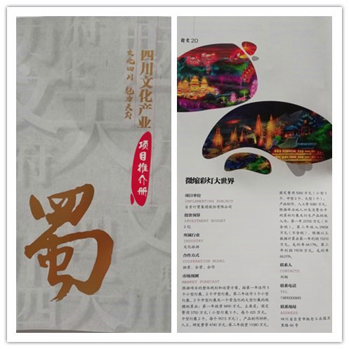 5月10日,第十四屆中國國際文化產業(yè)博覽交易會(以下簡稱“文博會”)在深圳會展中心舉辦。本屆文博會以習近平新時代中國特色社會主義思想為統(tǒng)領,深入宣傳貫徹黨的十九大精神,圍繞慶祝改革開放40周年的主題和“一帶一路”倡議、供給側結構性改革等,集中展示中國文化體制機制改革成果和文化產業(yè)發(fā)展成就。自貢燈貿集團的“微縮彩燈大世界”項目以其對傳統(tǒng)彩燈產業(yè)的顛覆性創(chuàng)造及良好的發(fā)展前景入選四川文化產業(yè)重點項目推介(該項目已獲國家版權局著作權保護)。