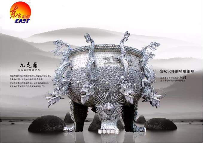 東方彩燈人構(gòu)思與制作的過(guò)程用著光年在計(jì)算,漫長(zhǎng)的工期,只為心中的夢(mèng)想——九龍鼎,樹(shù)立全新藝術(shù)作品的奇跡,近乎偏執(zhí)的追求,繁復(fù)的工藝展現(xiàn)出與生俱來(lái)的磅礴之氣。