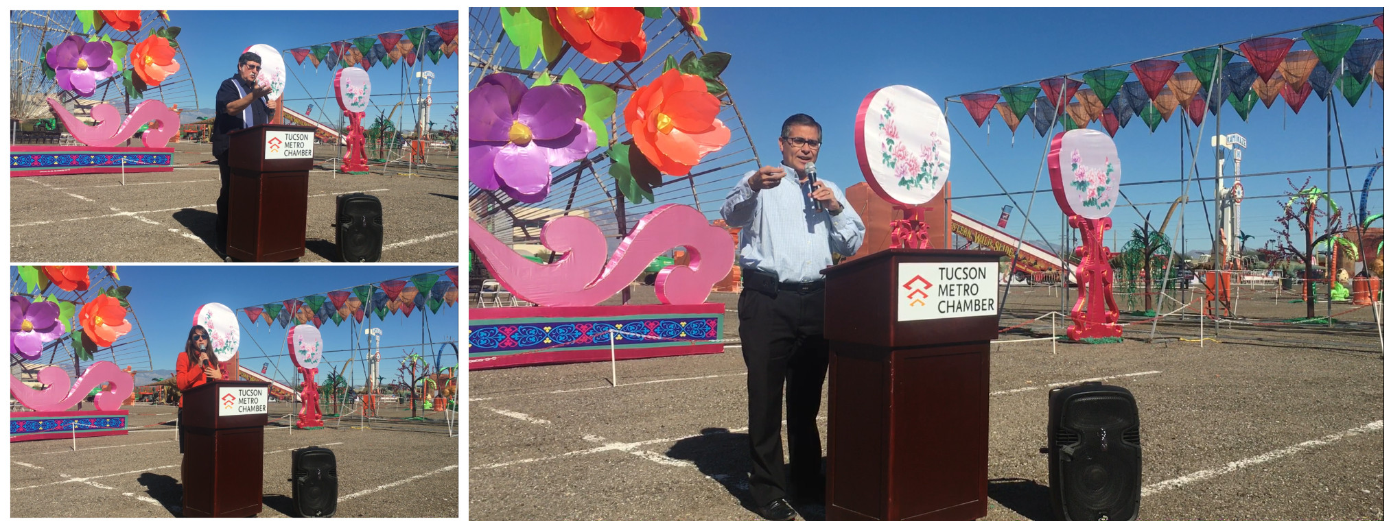 璀璨絢麗、獨(dú)具神韻的“2018世界之光圖森彩燈嘉年華”于11月7日在美國(guó)西部城市圖森華彩綻放。燈展受到當(dāng)?shù)卣蜕鐣?huì)各界的廣泛關(guān)注。Pima郡行政長(zhǎng)官、圖森市常務(wù)副市長(zhǎng)、市議會(huì)議員、郡商會(huì)會(huì)長(zhǎng)、市大都會(huì)商會(huì)董事長(zhǎng)、市旅游局局長(zhǎng)、市交通局局長(zhǎng)等美方官員出席開幕式。