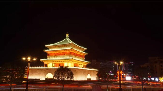夜晚降臨,我們一行來到西安另一標(biāo)志性建筑-鼓樓。它橫跨大街,和鐘樓遙相呼應(yīng)。晨鐘暮鼓,雄渾莊嚴(yán)。登臨樓上,憑欄便能眺望全城景色。