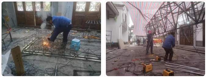 焊接也是一道十分重要的工序,碩大的花燈能夠穩(wěn)當立起來,形成立體模樣,全靠焊接做骨架。而這個活計又十足費工夫,在生產(chǎn)現(xiàn)場,焊工班的師傅戴著防護面罩,手下焊頭處火光四濺。做成一個花燈骨架,焊接點往往多達數(shù)百上千個。