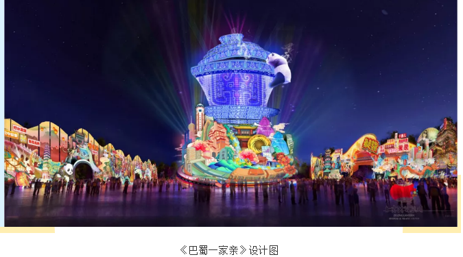 自貢燈貿(mào)集團承制的二十七屆自貢國際恐龍燈會大體量、集群式燈組《巴蜀一家親》創(chuàng)新構(gòu)建沉浸式場景,構(gòu)思獨特,氣勢壯觀,充分彰顯“中國燈城”的無限魅力,讓古老的彩燈藝術(shù)在本屆燈會煥發(fā)出青春的光華,開啟盛世中華的新春慶典。