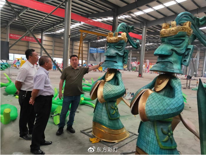燈貿(mào)集團執(zhí)行總裁陶建軍陪同督導組一行參觀了東方彩燈(出口)基地,觀摩彩燈制作過程,全面了解了彩燈工藝流程,詳細匯報了該項目的建設(shè)進度情況,并向督察組一行詳細介紹了燈貿(mào)集團三十一年發(fā)展歷程及未來發(fā)展規(guī)劃和思路。
