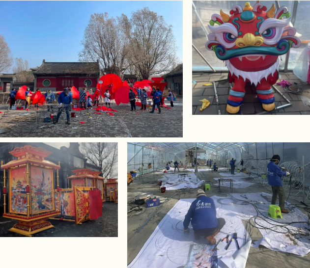寒風(fēng)凜冽,雪花紛飛,制燈現(xiàn)場(chǎng),到處是東方彩燈工匠們忙碌的身影。整個(gè)燈展工作正緊鑼密鼓地進(jìn)行中。