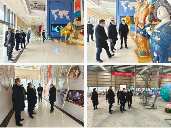 立法調(diào)研組一行人在集團(tuán)執(zhí)行總裁陶建軍陪同下首先參觀了集團(tuán)公司大廳展陳精品燈組“唐風(fēng)華韻”。隨后來到東方彩燈出口基地生產(chǎn)車間,第29屆自貢國(guó)際恐龍燈會(huì)燈貿(mào)集團(tuán)承制燈組的制作現(xiàn)場(chǎng),詳細(xì)了解了本屆燈會(huì)燈組制作的相關(guān)情況。