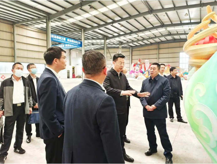 燈貿(mào)集團(tuán)執(zhí)行總裁陶建軍向調(diào)研團(tuán)一行詳細(xì)介紹了燈貿(mào)集團(tuán)33年發(fā)展歷程及未來(lái)發(fā)展規(guī)劃和思路,隨后陪同調(diào)研團(tuán)領(lǐng)導(dǎo)一行人參觀了集團(tuán)公司大廳展陳精品燈組“唐風(fēng)華韻”及東方彩燈(出口)基地。