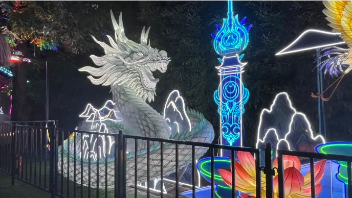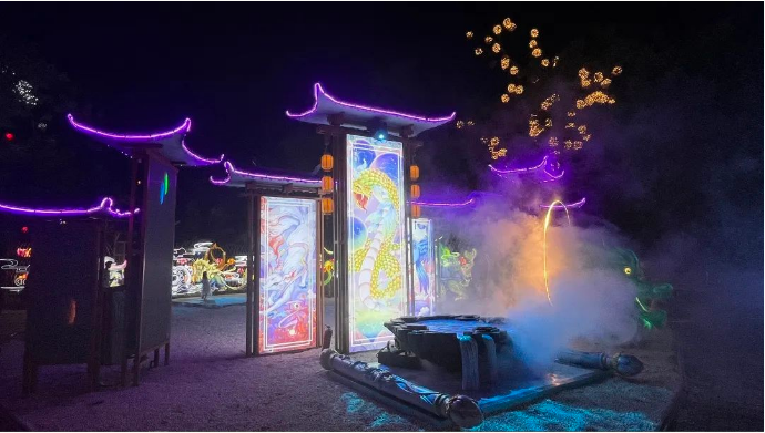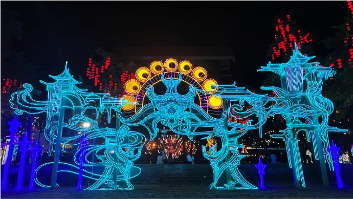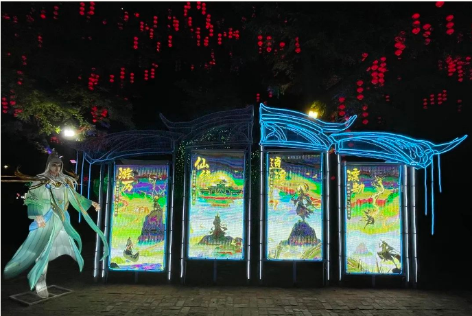 本次燈展再掀“尋蹤仙文化之旅”風潮。開封萬歲山·大宋武俠城內(nèi),游人如織,全新仙俠場景,為諸位仙友打造出沉浸式仙俠文化彩燈光影盛宴,通過瀟灑肆意的仙俠世界與傳統(tǒng)彩燈文化多維度結(jié)合的方式,以全新的模式詮釋中國傳統(tǒng)文化的璀璨魅力,解鎖江湖游玩的不同體驗。